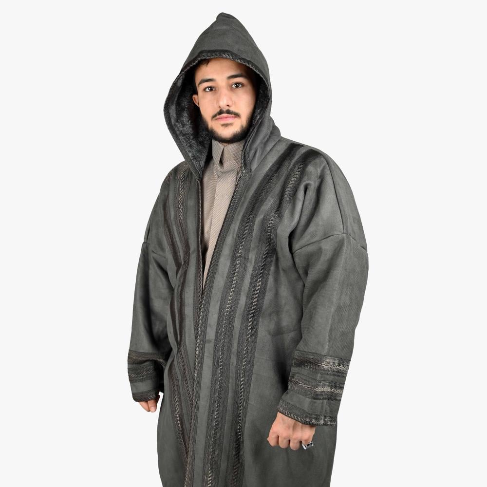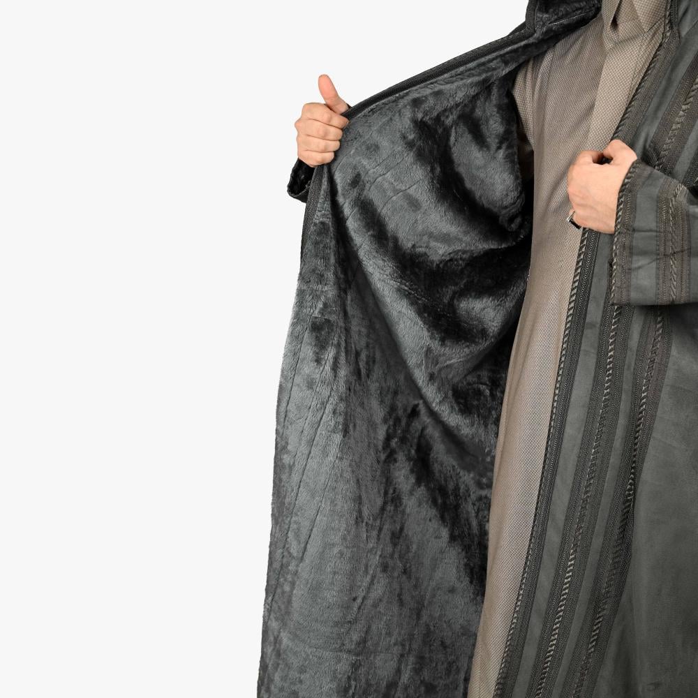 صُنعت بدقة عالية من قماش هيكنز الفاخر بشرائط منقوشة تضيف لمسة مميزة، ومبطنة بفراء ناعم يمنحك راحة قصوى ويحافظ على حرارة جسدك في الأجواء الباردة.